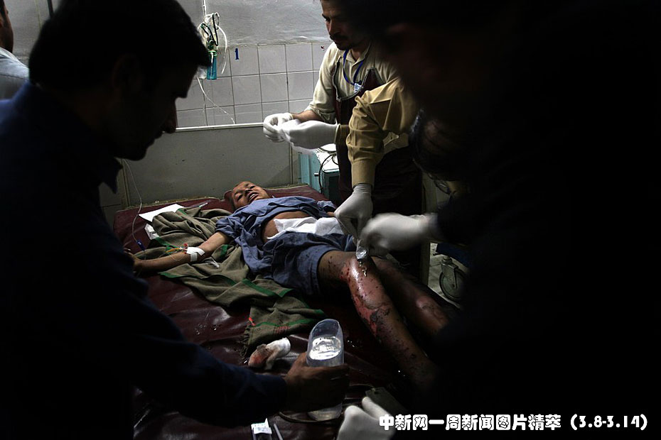 周四,巴基斯坦白沙瓦再次遭到炸彈襲擊。圖為當(dāng)?shù)蒯t(yī)院正在救治一名受傷的兒童。圖片來源:中國新聞網(wǎng)