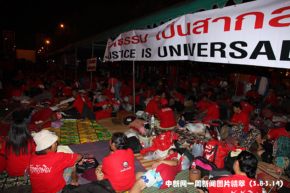 周六,泰國“紅衫軍”陸續(xù)從泰國北部、東北部等外府進入曼谷市,在集會主會場幸福橋和五馬路路段搭設(shè)演講舞臺和帳篷,拉開大規(guī)模示威序幕。圖片來源:中國新聞網(wǎng)