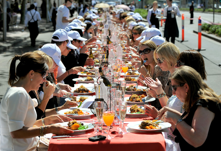 近日,澳大利亞墨爾本,人們在號稱“世界上最長的午餐”活動中享受美味佳肴。圖片來源:中國新聞網(wǎng)