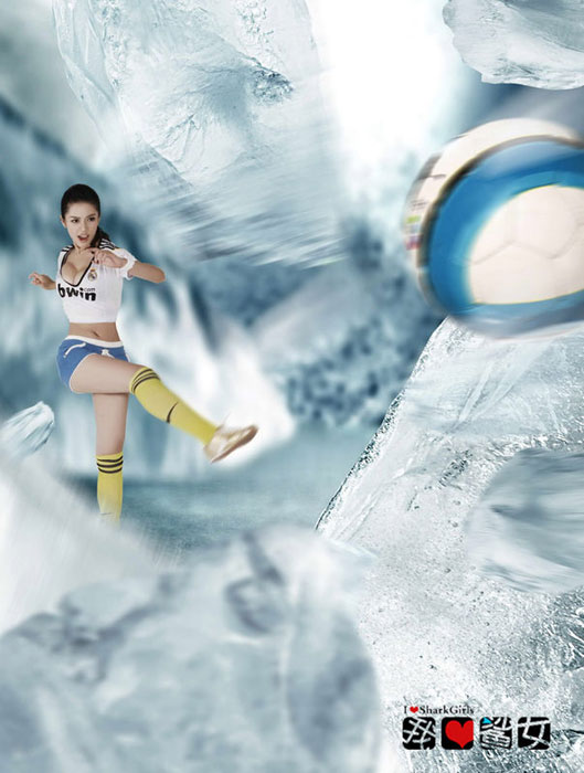 靚模潘霜霜最近拍攝了一組身穿皇馬足球隊(duì)8號(hào)隊(duì)服的性感寫真,其中包括在場(chǎng)上模仿C羅踩單車過(guò)人,最后被踢傷和踢碎玻璃的表情。潘霜霜現(xiàn)已簽約保利博納,正式進(jìn)軍電影圈。圖片來(lái)源:中國(guó)新聞網(wǎng)