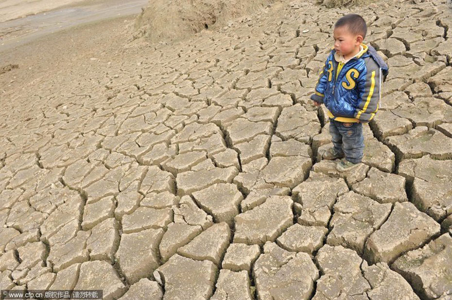 中國西南地區(qū)抗旱形勢十分嚴(yán)峻,云南、貴州、廣西、重慶、四川五省(區(qū)、市)局部出現(xiàn)嚴(yán)重干旱。截至3月16日,有2000多萬人因旱飲水困難。圖片來源:中國新聞網(wǎng)