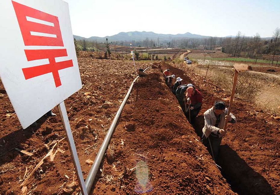 中國(guó)西南部分地區(qū)遭受了六十年甚至百年一遇的特大旱災(zāi),給春耕備耕帶來(lái)不利影響。受災(zāi)各地民眾在當(dāng)?shù)卣膸ьI(lǐng)下打響了萬(wàn)眾一心降伏旱魃的戰(zhàn)役。