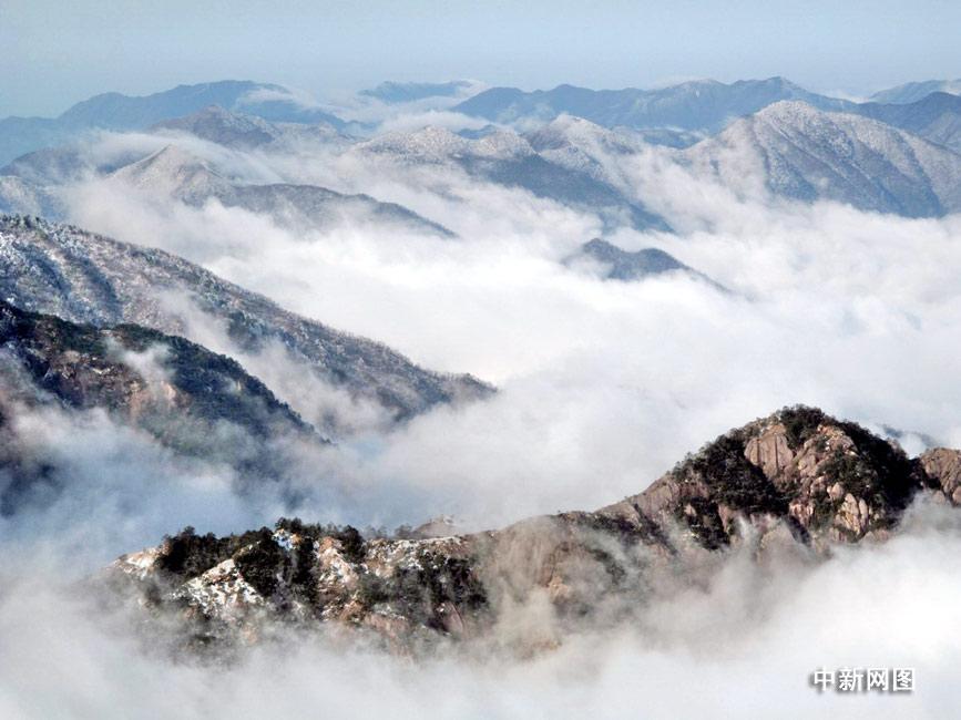 3月25日,春雨初霽,安徽黃山風景區(qū)綻放壯美云海,游眾置身忘懷“人間仙境”。 (張啟飛)