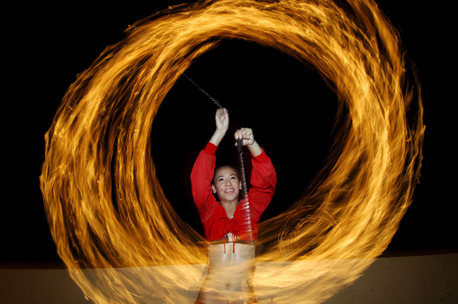 當(dāng)?shù)貢r(shí)間3月25日,在菲律賓馬尼拉,一名舞者在火焰中“熱舞”。