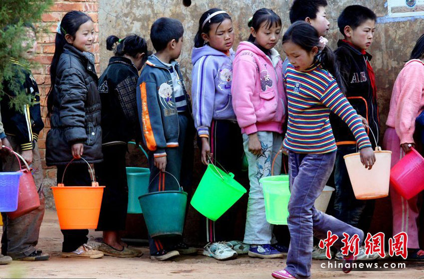 2010年3月31日,云南尋甸縣河口鄉(xiāng)白石巖小學(xué)里,一個(gè)老師站在水井前控制水量,一個(gè)學(xué)生5公斤水——這是一天的生活用水。