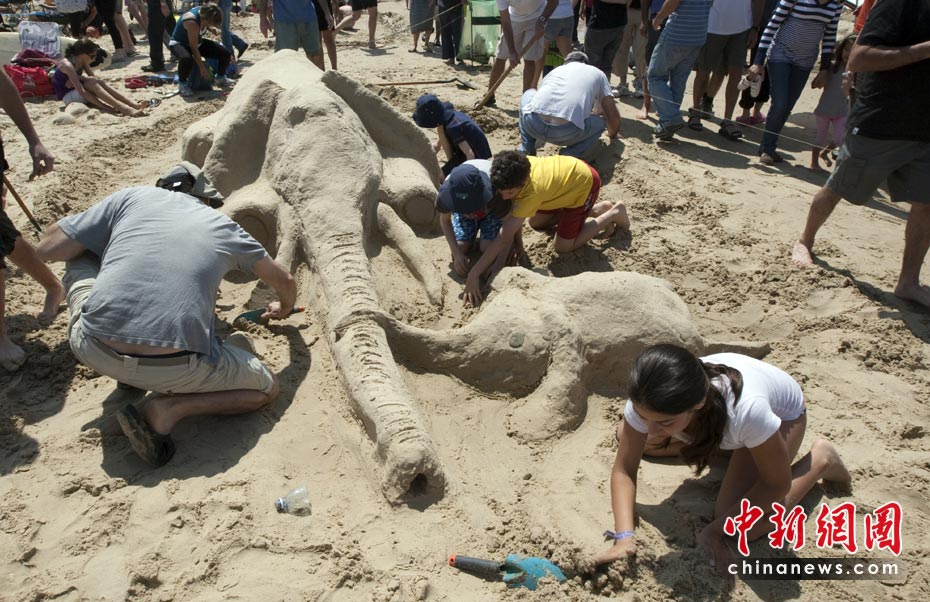 4月5日,以色列國家公園和自然保護(hù)區(qū)管理局在北城鎮(zhèn)Beit Yanai舉行了一年一度的沙雕大賽。世界眾多國家的沙雕愛好者前來參賽。圖片來源:中國新聞網(wǎng)