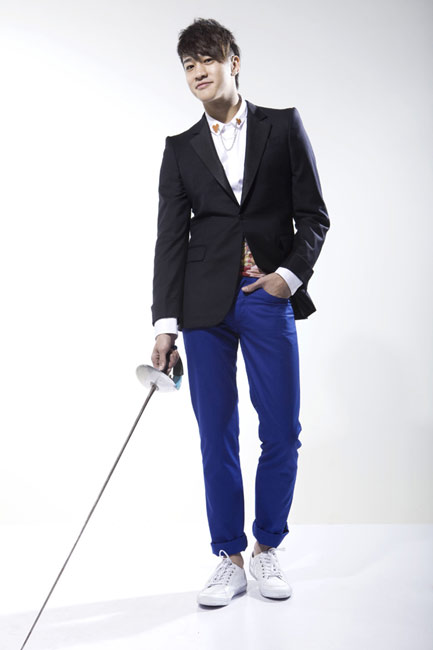 4月8日,北京訊,何潤東變身擊劍手拍攝了一組當下最流行的混搭風寫真照。何潤東上身身著黑色紳士西服,下身配上一條彩色休閑褲,外加白色帆布鞋,將混搭風表現(xiàn)得淋漓盡致。
