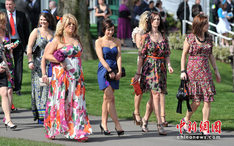 4月9日,英國安特里,女士們盛裝出席安特里賽馬場女士日活動(dòng)。