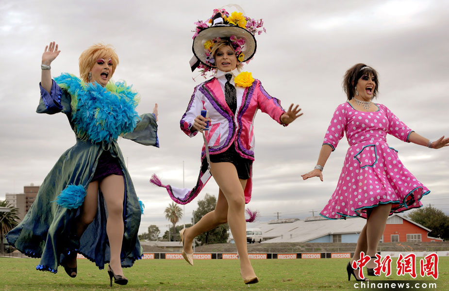 4月10日,在澳大利亞墨爾本,人們穿著高跟鞋賽跑。旨在挑戰(zhàn)多人穿高跟鞋賽跑的吉尼斯世界紀(jì)錄。盡管最終挑戰(zhàn)失敗,參賽者仍在80米的賽道上爭先恐后,各顯神通。