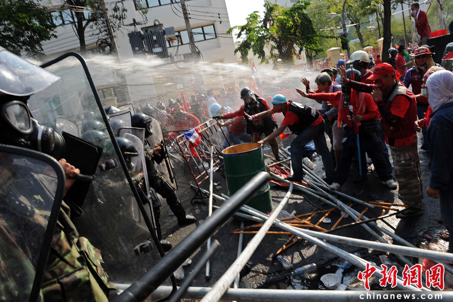 4月10日,泰國軍隊在首都曼谷對支持前總理他信的“紅衫軍”進行武力驅(qū)散,雙方爆發(fā)嚴重沖突,目前已造成18人死亡,數(shù)百人受傷。圖片來源:中國新聞網(wǎng)