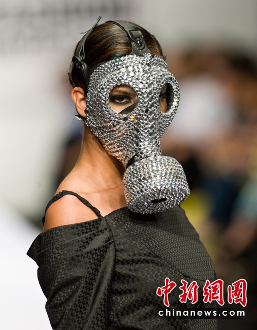 當?shù)貢r間4月12日,在墨西哥首都墨西哥城舉行的奔馳時裝周,靚模們各種怪異妝扮在T臺上上演了一場讓人眩目的造型秀。