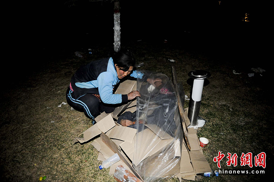 圖為4月15日凌晨,青海玉樹地震受災(zāi)民眾在露天睡覺,由于救災(zāi)物資匱乏有的民眾只得以塑料薄膜當棉被御寒。中新社發(fā) 廖攀 攝