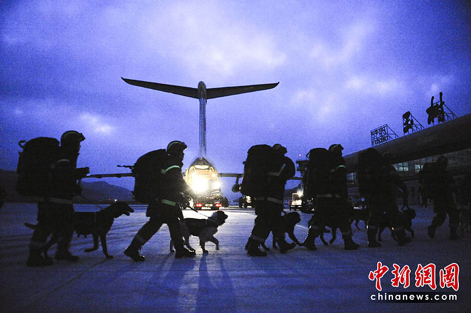 圖為4月14日20點20分,中國國際地震救援隊抵達玉樹機場。中新社發(fā) 廖攀 攝