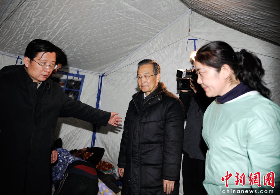 4月15日20時,中國國務院總理溫家寶來到青海省玉樹縣玉樹自治州醫(yī)院看望受災民眾。溫總理看望完受災民眾后表情凝重。中新社發(fā) 廖攀 攝
