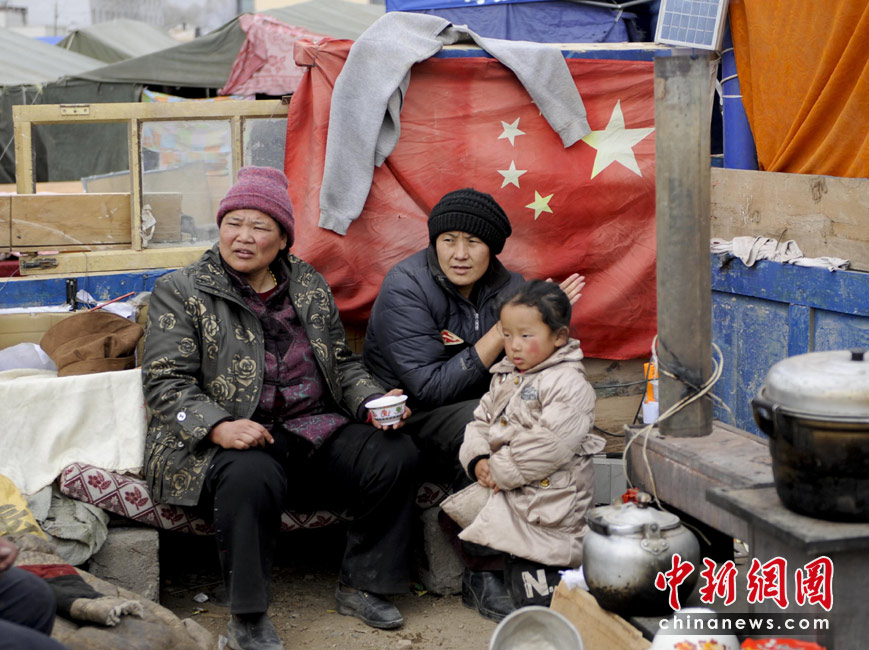 4月16日,青海玉樹體育場(chǎng)地震受災(zāi)民眾安置點(diǎn),生活得以保障的受災(zāi)一家人期待重建新生活。中新社發(fā) 廖攀 攝