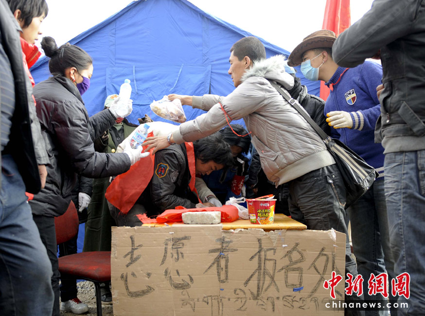 4月16日,青海玉樹體育場受災(zāi)民眾安置點(diǎn),來自全國各地的志愿者集結(jié)在一起將有序開展幫助救援工作,目前報(bào)名人數(shù)已經(jīng)過百。中新社發(fā) 廖攀 攝