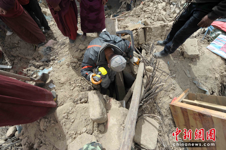 4月16日,青海玉樹(shù)地震救援進(jìn)入第三天,來(lái)自蘭州軍區(qū)、山東消防特勤、重慶特勤、廣東邊防總隊(duì)、云南邊防總隊(duì)、青海民兵等搜救隊(duì)連續(xù)搜救,幸存者奇跡生還。中新社發(fā) 陳文 攝