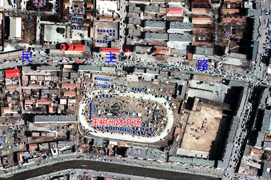 利用對(duì)地觀測(cè)中心2010年4月16日獲取的高分辨率航空遙感數(shù)據(jù),提取出玉樹州結(jié)古鎮(zhèn)城區(qū)范圍內(nèi)地震破壞最嚴(yán)重或典型地區(qū),使之與GoogleEarth中相應(yīng)位置的震前遙感衛(wèi)星數(shù)據(jù)進(jìn)行對(duì)比,直觀展現(xiàn)結(jié)古鎮(zhèn)在此次地震中的受影響程度。圖片來(lái)源:中國(guó)科學(xué)院