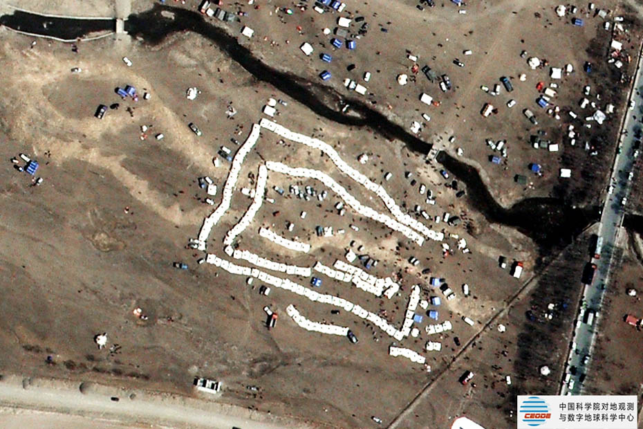 災(zāi)后避難所-馬場(chǎng)帳篷〔由中國科學(xué)院對(duì)地觀測(cè)與數(shù)字地球科學(xué)中心拍攝〕