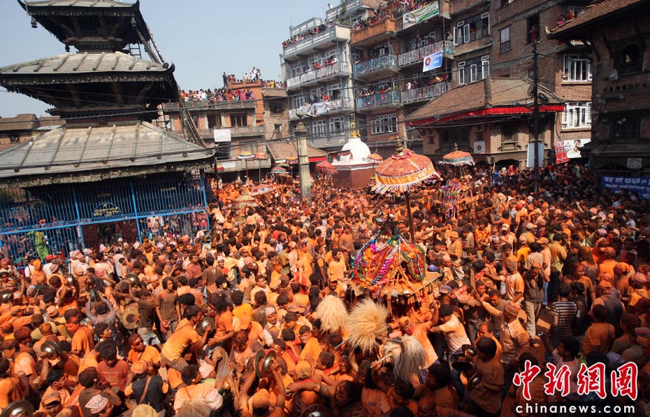 4月15日,尼泊爾迎來(lái)一年一度的傳統(tǒng)節(jié)日“尼歷新年”。當(dāng)日全國(guó)放假一天,在加德滿都郊區(qū)人們涌上街頭潑灑紅粉慶祝新年。圖片來(lái)源:中國(guó)新聞網(wǎng)