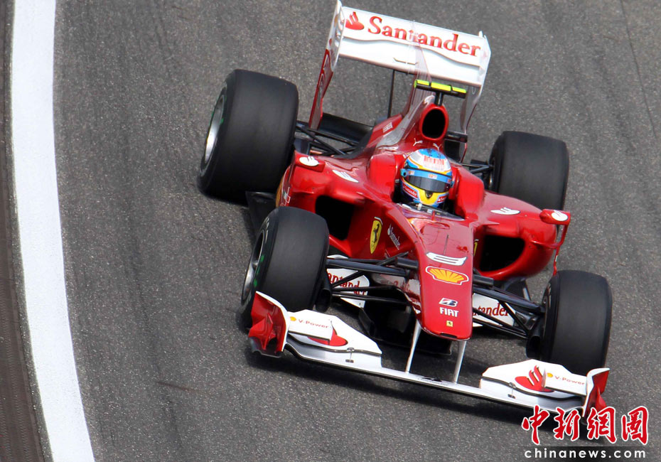 4月17日下午,2010國際汽聯(lián)F1世界錦標(biāo)賽上海站在上海國際賽車場舉行排位賽,代表紅牛車隊(duì)出戰(zhàn)的德國車手維特爾獲得桿位,隊(duì)友、澳大利亞車手韋伯獲得第二名,法拉利車隊(duì)的西班牙車手阿隆索獲得第三名。中新社記者 任晨鳴 攝