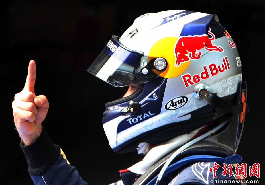 4月17日下午,2010國際汽聯(lián)F1世界錦標(biāo)賽上海站在上海國際賽車場(chǎng)舉行排位賽,代表紅牛車隊(duì)出戰(zhàn)的德國車手維特爾獲得桿位,隊(duì)友、澳大利亞車手韋伯獲得第二名,法拉利車隊(duì)的西班牙車手阿隆索獲得第三名。中新社記者 任晨鳴 攝