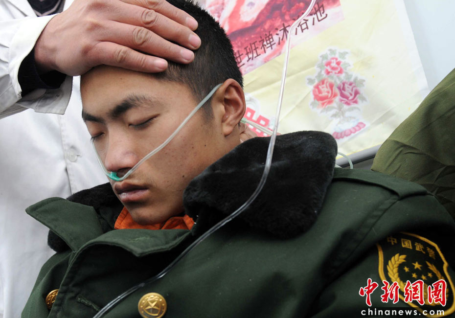 4月18日清晨,玉樹昨夜寒風冰雹使地震災區(qū)雪上加霜。部分救援人員出現嚴重高原反應,準備搭乘中國空軍重型運輸機撤回“天府之國”成都。中新社發(fā) 賈國榮 攝