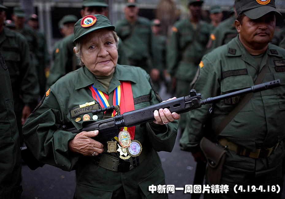 4月13日周二是委內(nèi)瑞拉的“民兵日”,一位老民兵手持步槍在首都加拉加斯參加紀(jì)念活動?偨y(tǒng)查韋斯當(dāng)天發(fā)表講話,以此紀(jì)念他在八年前被政變短暫推翻后重新執(zhí)政。