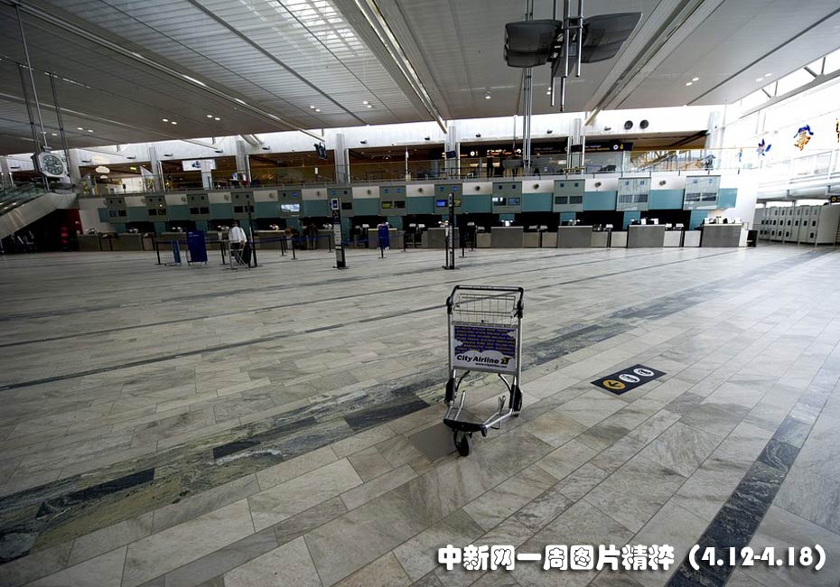 瑞典一機(jī)場大廳辦理登機(jī)手續(xù)的窗口前空無一人,此前冰島火山噴發(fā)產(chǎn)生的火山灰導(dǎo)致歐洲多個機(jī)場被迫關(guān)閉。