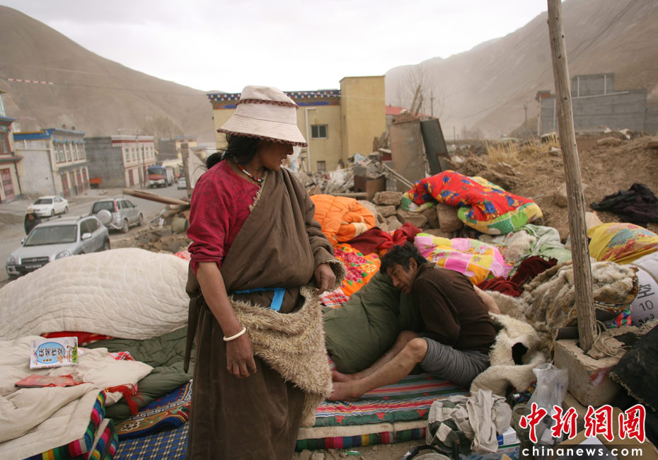 4月18日,玉樹(shù)部分居民還未搭起帳篷。中新社發(fā) 蘇丹 攝