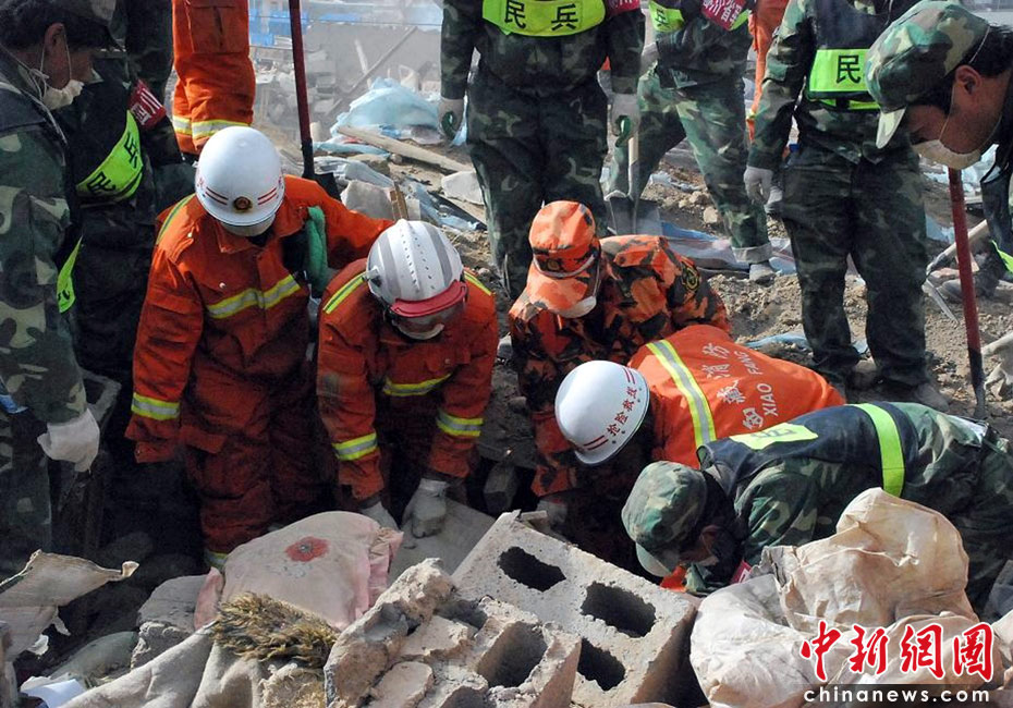 西藏公安消防部隊近日赴玉樹抗震救災(zāi)分隊103名官兵分成5個小組在不同區(qū)域展開搜救。圖為西藏消防救援官兵與當?shù)孛癖黄鹁仍V行律绨l(fā) 劉毅 攝