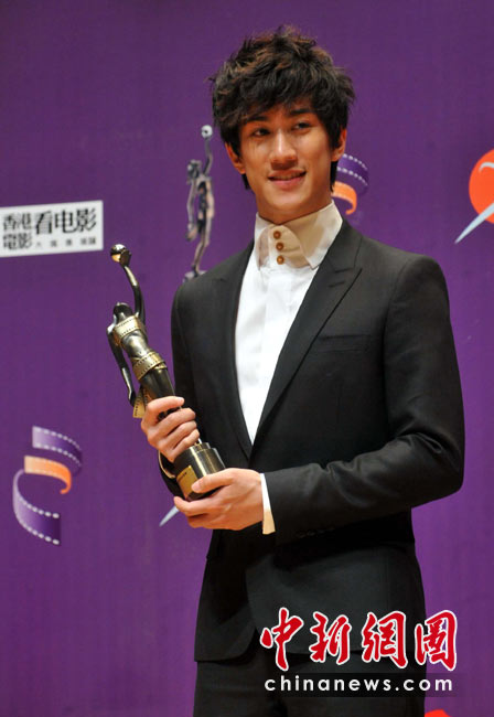 4月18日晚,“第二十九屆香港電影金像獎(jiǎng)”頒獎(jiǎng)典禮在香港文化中心大劇院隆重舉行,新晉演員李治廷憑演出電影“歲月神偷”奪得最佳新演員獎(jiǎng)項(xiàng)。中新社發(fā) 鄧慶樂 攝