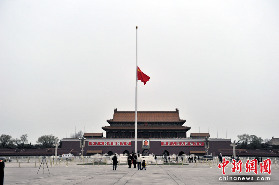 天安門(mén)廣場(chǎng)下半旗向地震遇難者致哀