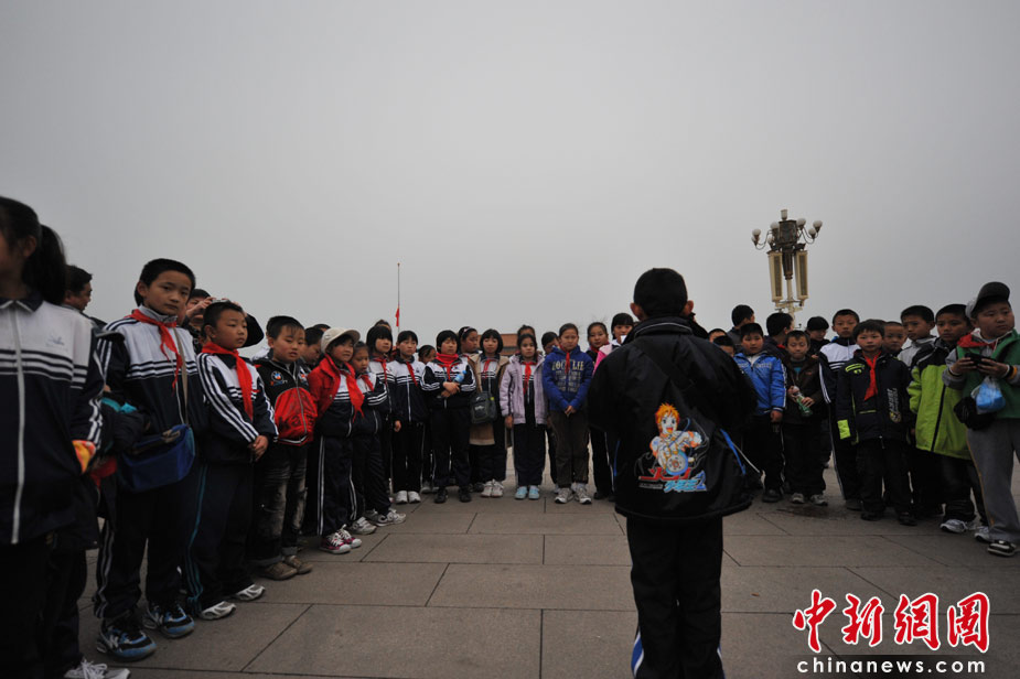 4月21日清晨,廊坊第十二小學(xué)的小學(xué)生來(lái)到天安門廣場(chǎng)朗讀自己的作文悼念青海玉樹地震的遇難同胞。中新網(wǎng)記者 金碩 攝