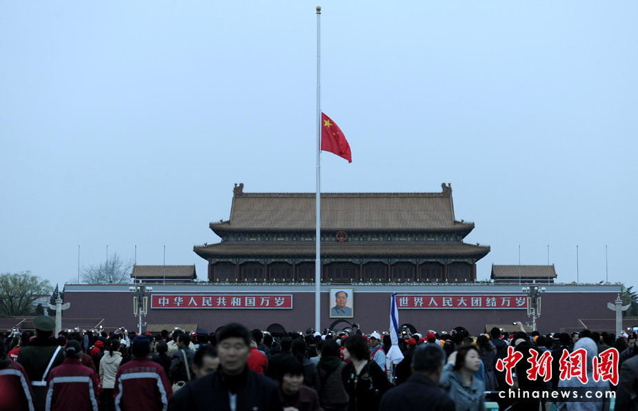 天安門(mén)廣場(chǎng)下半旗志哀