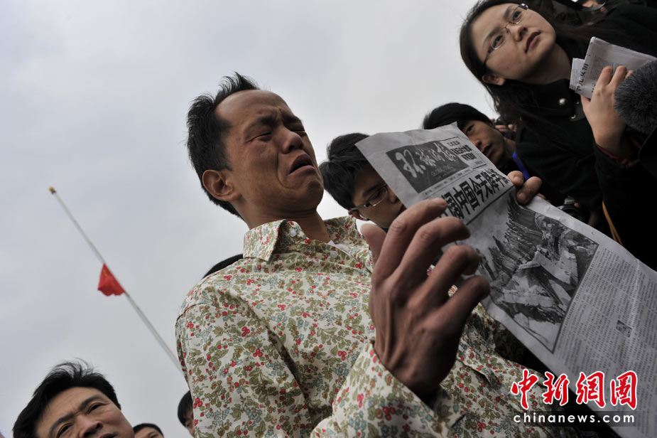 4月21日,為表達(dá)全國(guó)各族人民對(duì)青海玉樹地震遇難同胞的深切哀悼,中國(guó)國(guó)務(wù)院決定,舉行全國(guó)哀悼活動(dòng),全國(guó)和駐外使領(lǐng)館下半旗志哀,停止公共娛樂(lè)活動(dòng)。圖為北京天安門廣場(chǎng)上哀悼遇難者的民眾。中新網(wǎng)記者 金碩 攝