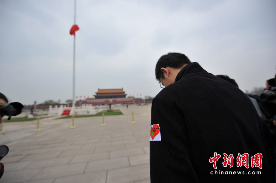 4月21日,為表達全國各族人民對青海玉樹地震遇難同胞的深切哀悼,中國國務院決定,舉行全國哀悼活動,全國和駐外使領館下半旗志哀,停止公共娛樂活動。圖為北京天安門廣場上哀悼遇難者的民眾。中新網(wǎng)記者 金碩 攝