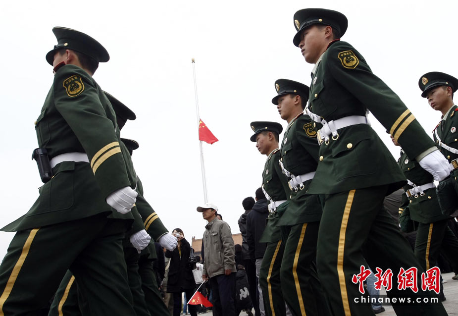 4月21日,為表達(dá)全國(guó)各族人民對(duì)青海玉樹地震遇難同胞的深切哀悼,中國(guó)國(guó)務(wù)院決定,舉行全國(guó)哀悼活動(dòng),全國(guó)和駐外使領(lǐng)館下半旗志哀,停止公共娛樂活動(dòng)。中新社發(fā) 杜洋 攝