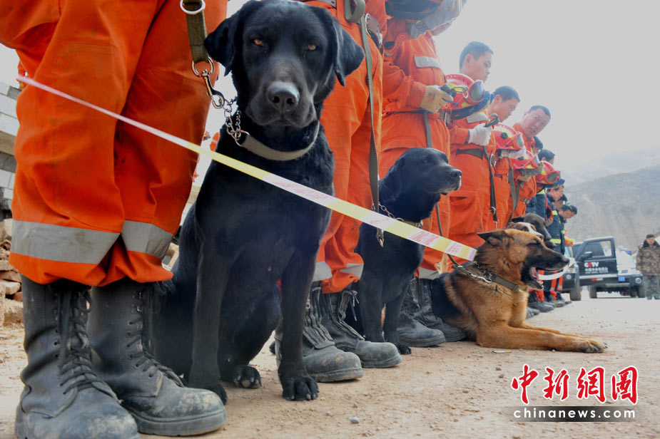 4月21日10時(shí),中國國家救援隊(duì)在青海玉樹地震災(zāi)區(qū)搜尋廢墟上默哀,深切哀悼地震遇難同胞。中新社發(fā) 賈國榮 攝