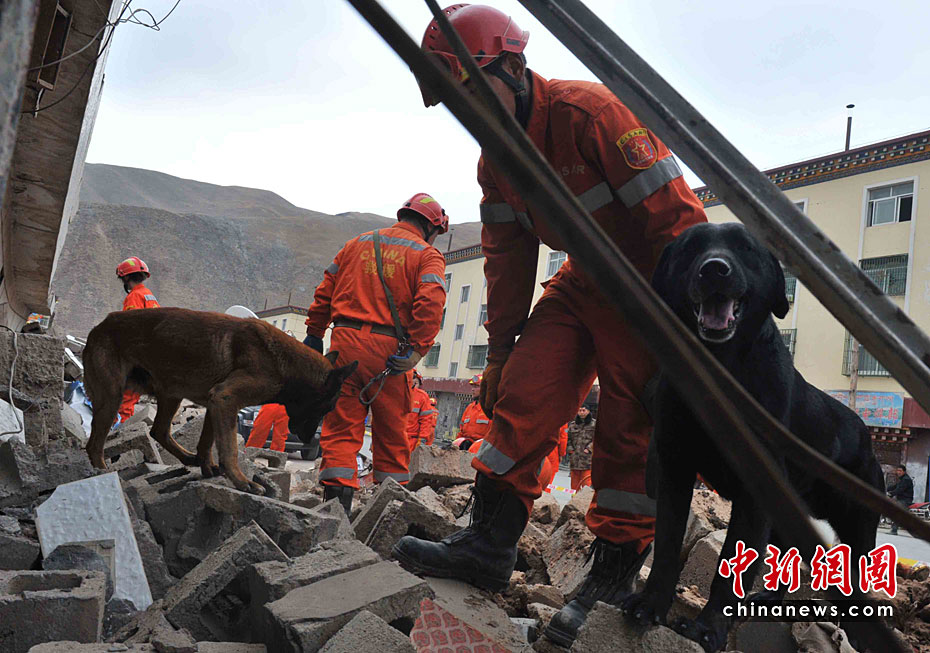 名貴的黑貝犬是中國(guó)國(guó)家救援隊(duì)趕赴青海玉樹(shù)地震災(zāi)區(qū)6只搜救犬隊(duì)成員之一,身價(jià)近百萬(wàn)元人民幣。4月21日清晨八時(shí)許,它在救援隊(duì)員的帶領(lǐng)下,到玉樹(shù)地震災(zāi)區(qū)中心商業(yè)街廢墟里,四處奔波,盡職盡力尋找生命跡象。10時(shí)后,他和救援隊(duì)員都出現(xiàn)高原反應(yīng),暫時(shí)休整,準(zhǔn)備再戰(zhàn)。賈國(guó)榮 攝