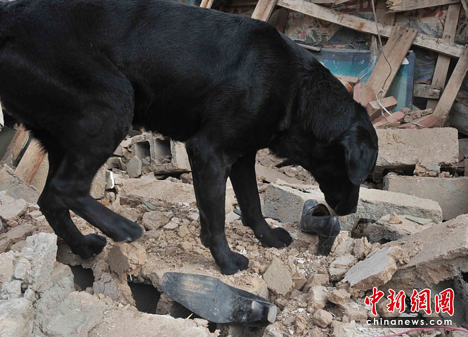搜救犬黑貝玉樹(shù)地震廢墟上的一個(gè)清晨
