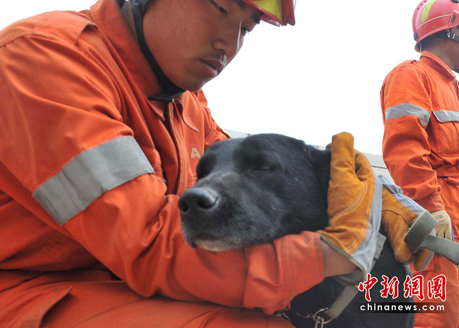 名貴的黑貝犬是中國國家救援隊趕赴青海玉樹地震災(zāi)區(qū)6只搜救犬隊成員之一,身價近百萬元人民幣。4月21日清晨八時許,它在救援隊員的帶領(lǐng)下,到玉樹地震災(zāi)區(qū)中心商業(yè)街廢墟里,四處奔波,盡職盡力尋找生命跡象。10時后,他和救援隊員都出現(xiàn)高原反應(yīng),暫時休整,準(zhǔn)備再戰(zhàn)。賈國榮 攝