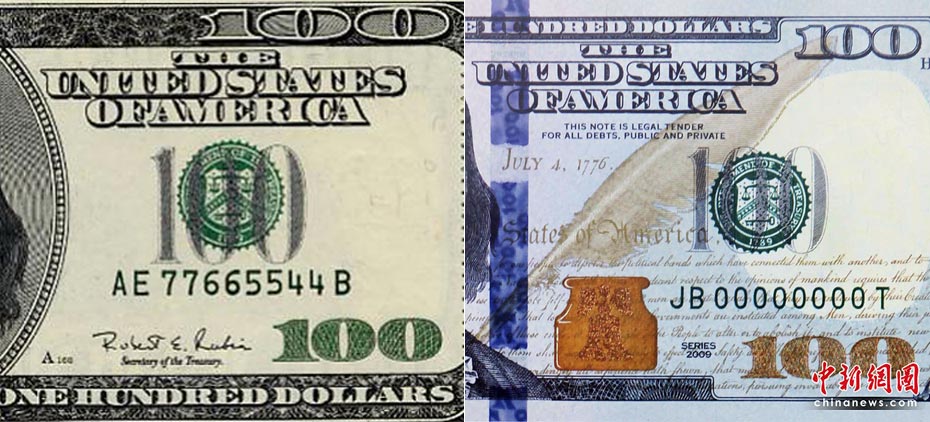 4月21日,美國財(cái)政部和美聯(lián)儲(chǔ)共同發(fā)布新版100美元面值的紙幣票樣。此次發(fā)行新版百元美鈔旨在防范假鈔,同時(shí),老版美元仍將繼續(xù)流通。圖片來源:中國新聞網(wǎng)