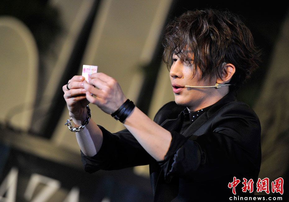 4月25日,由《時尚芭莎》雜志社主辦的第8屆“BAZAAR明星慈善夜”活動在上海舉行,圖為劉謙為現(xiàn)場嘉賓表演精彩炫目的魔術。 中新網(wǎng)記者 金碩 攝