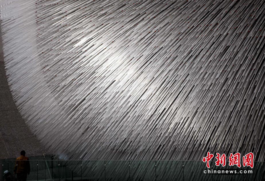 4月27日,上海世博園英國館,工人抓緊維護展館設(shè)施。中新社發(fā) 盛佳鵬 攝