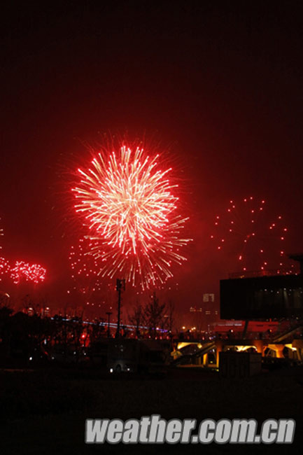 2010年4月27日,上海世博會開幕式彩排順利進行。圖為美麗的煙花。卞赟 攝