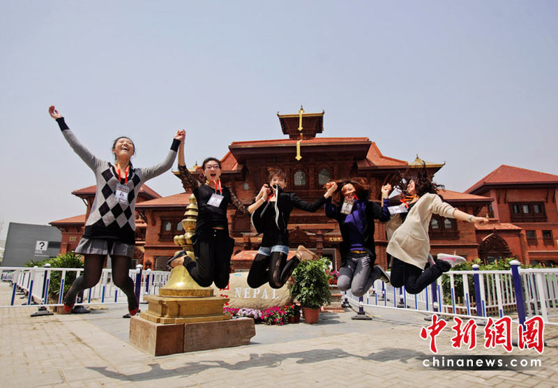 4月30日晚,舉世矚目的上海世博會(huì)開幕式將在黃浦江畔世博園區(qū)舉行。圖為4月30日,尼泊爾館前,幾名世博工作人員跳起來(lái)合影,慶祝即將到來(lái)的動(dòng)人時(shí)刻。