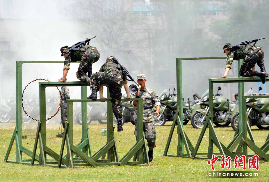 為慶祝“五一”國際勞動節(jié),進(jìn)一步增進(jìn)與香港社會各界相互溝通與交流,中國人民解放軍駐香港部隊5月2日開放了石崗軍營。圖為駐港部隊精彩的表演。 中新社發(fā) 鄧慶樂 攝