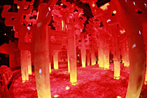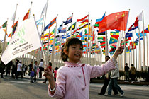 5月2日,上海世博會是第一個正式提出“低碳世博”理念的世博會,圍繞著這樣的理念,上海世博園區(qū)內(nèi)的低碳元素比比皆是。圖為印度館內(nèi)竹制的世界最大穹頂,這個竹制穹頂上方是小型風力發(fā)電裝置和太陽能電池板,為整個場館提供綠色清潔能源。中新社發(fā) 湯彥俊 攝