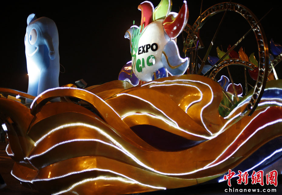 5月2日晚,由一輛輛充滿異域風(fēng)情的花車和身著盛裝的表演者組成的“歡樂盛裝大巡游”在世博園區(qū)舉行。中新網(wǎng)記者 盛佳鵬 攝